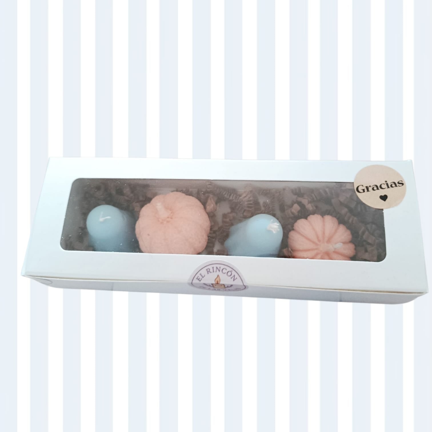 Cada caja incluye dos simpáticas calabazas y dos adorables fantasmas, elaborados con cera de soja 100% natural y ecológica. Su suave aroma creará una atmósfera cálida y acogedora, perfecta para noches de películas de terror o para dar la bienvenida a tus invitados.